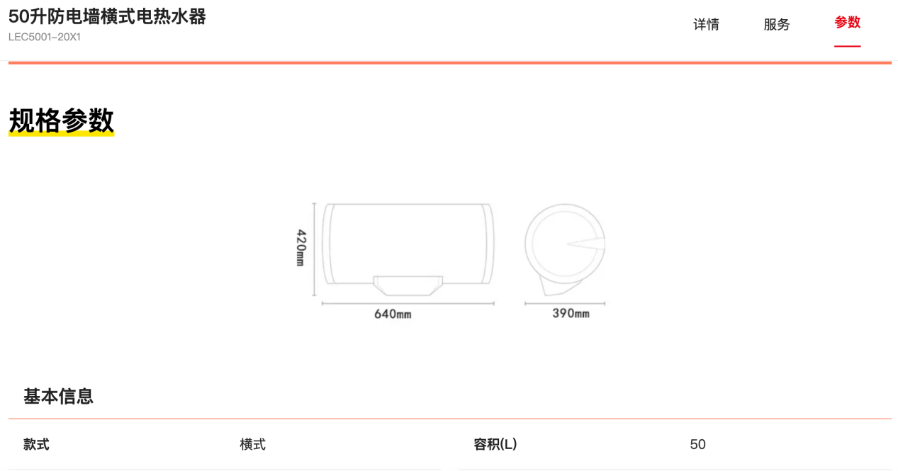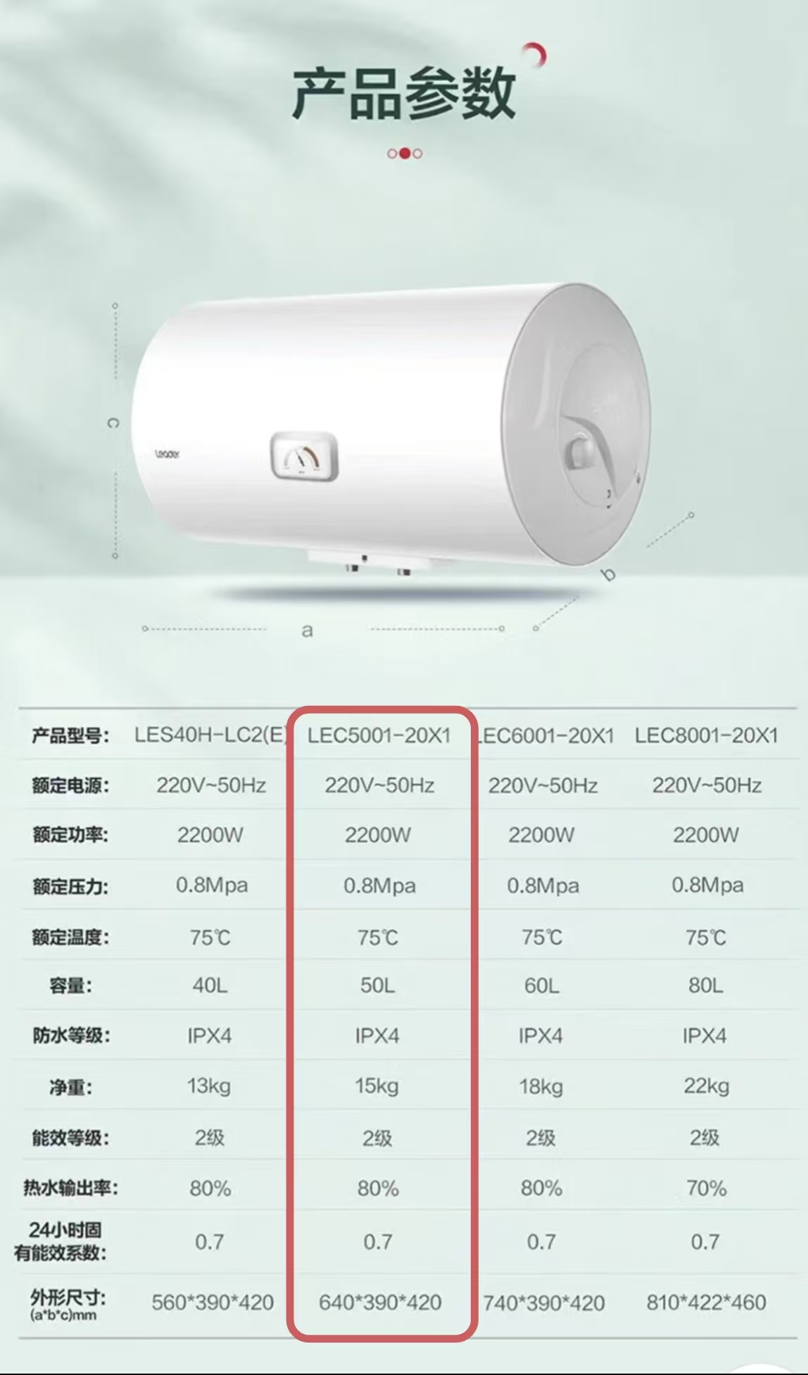 统帅/Leader LEC5001-20X1 50升电热水器 2200W节能速热家用安全浴储水式